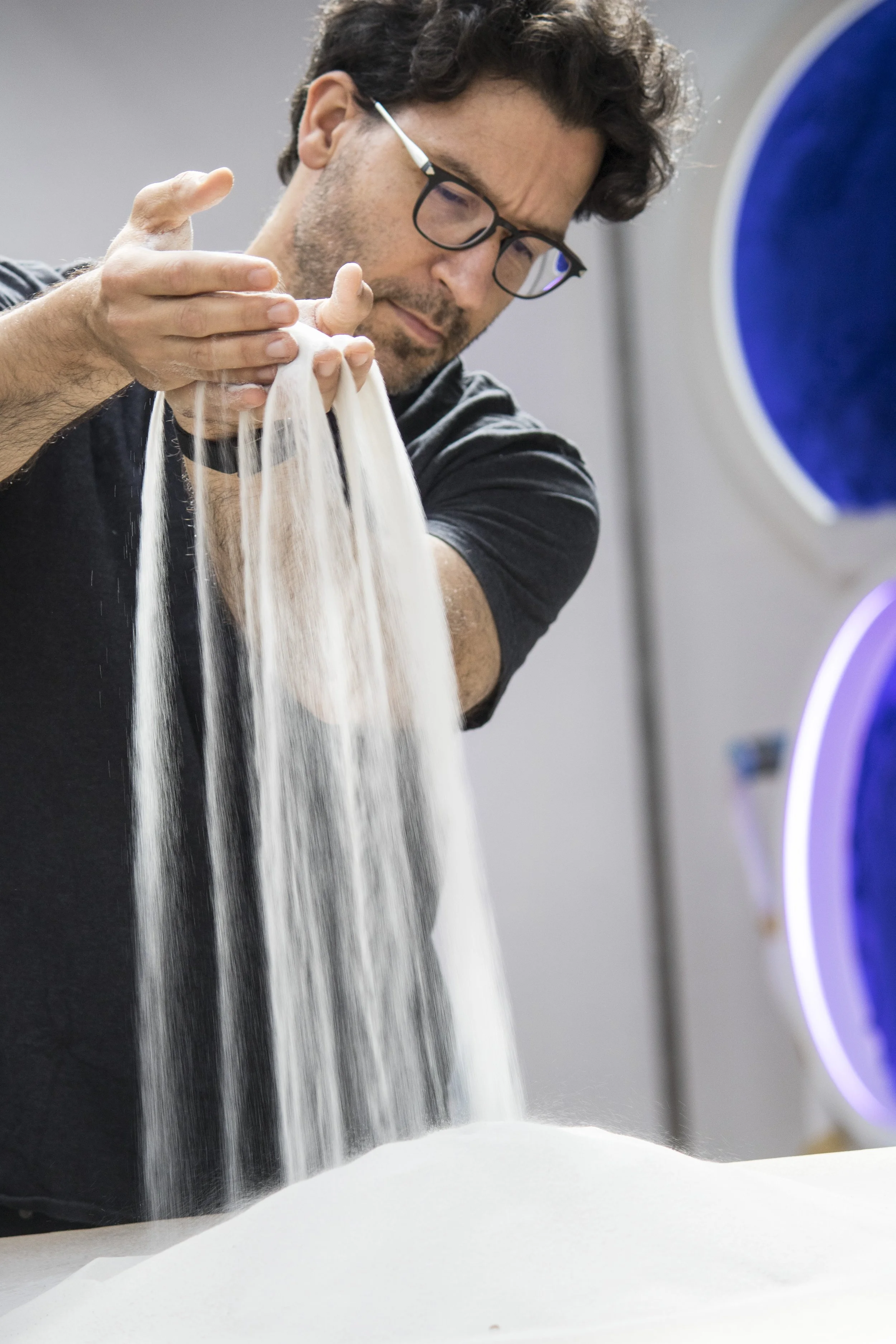 The studio produces work for private collections, galleries, and curated environments. Its current focus is the MaTi series — an ongoing body of work first presented in September 2024, exploring the expressive potential of sand, resin, and directional light.
